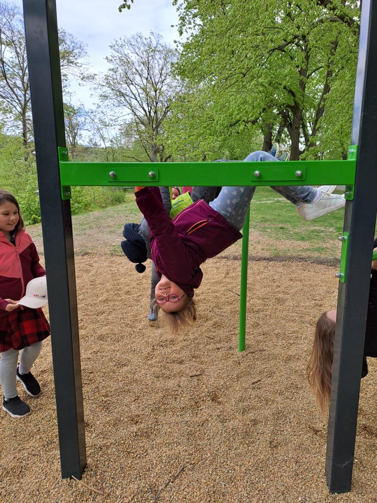 Družina na workoutovém hřišti