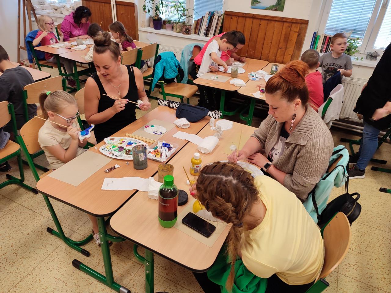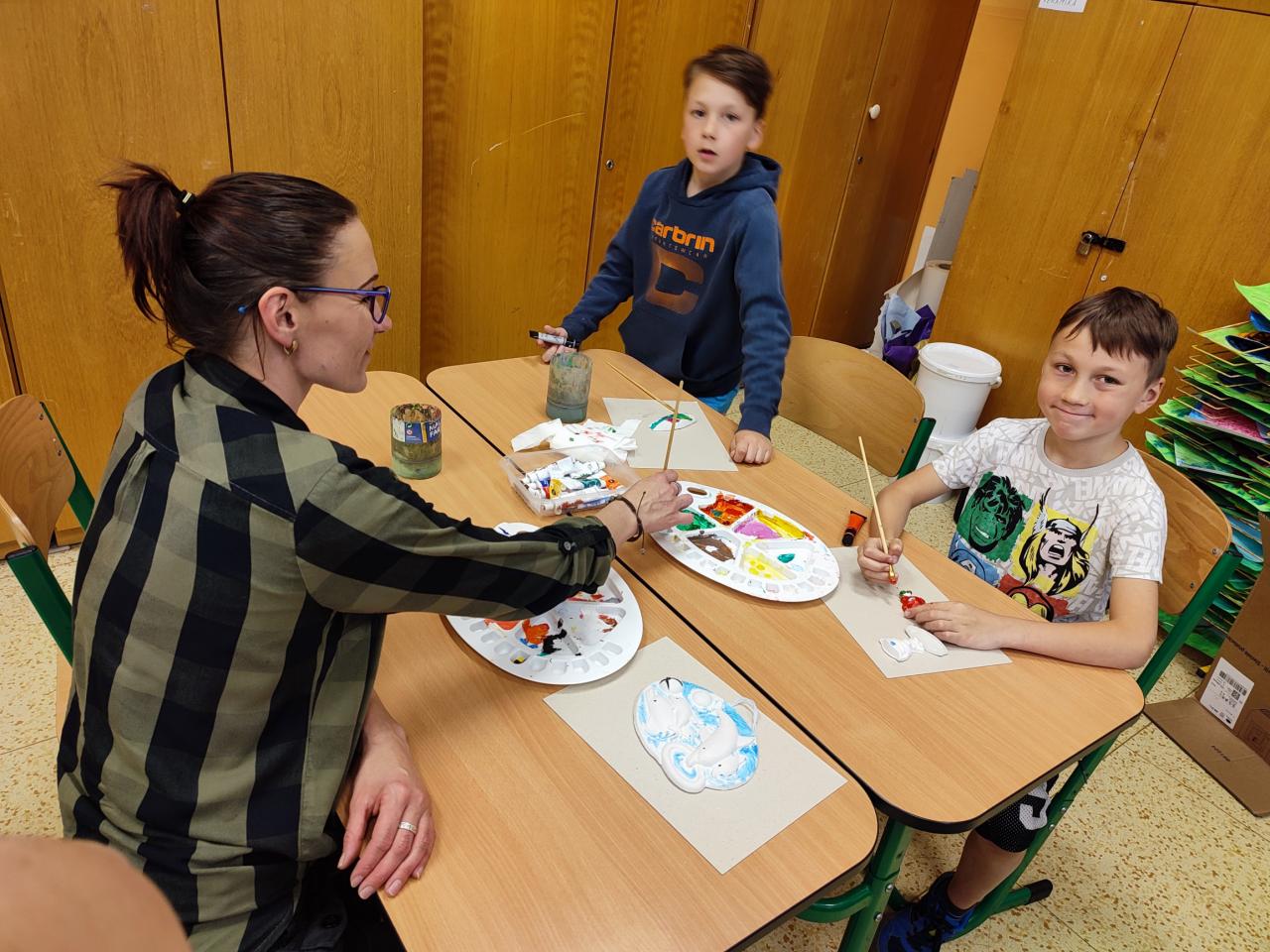 Děti si mohly vybrat z mnoha motivů- např. obrázek delfínů, sošku koníka, postavičku superhrdinů, svícen aj. Do malování se s chutí zapojila i většina rodičů. Každý byl na svou práci patřičně hrdý a svůj nabarvený odlitek si nadšeně odnesl domů.
