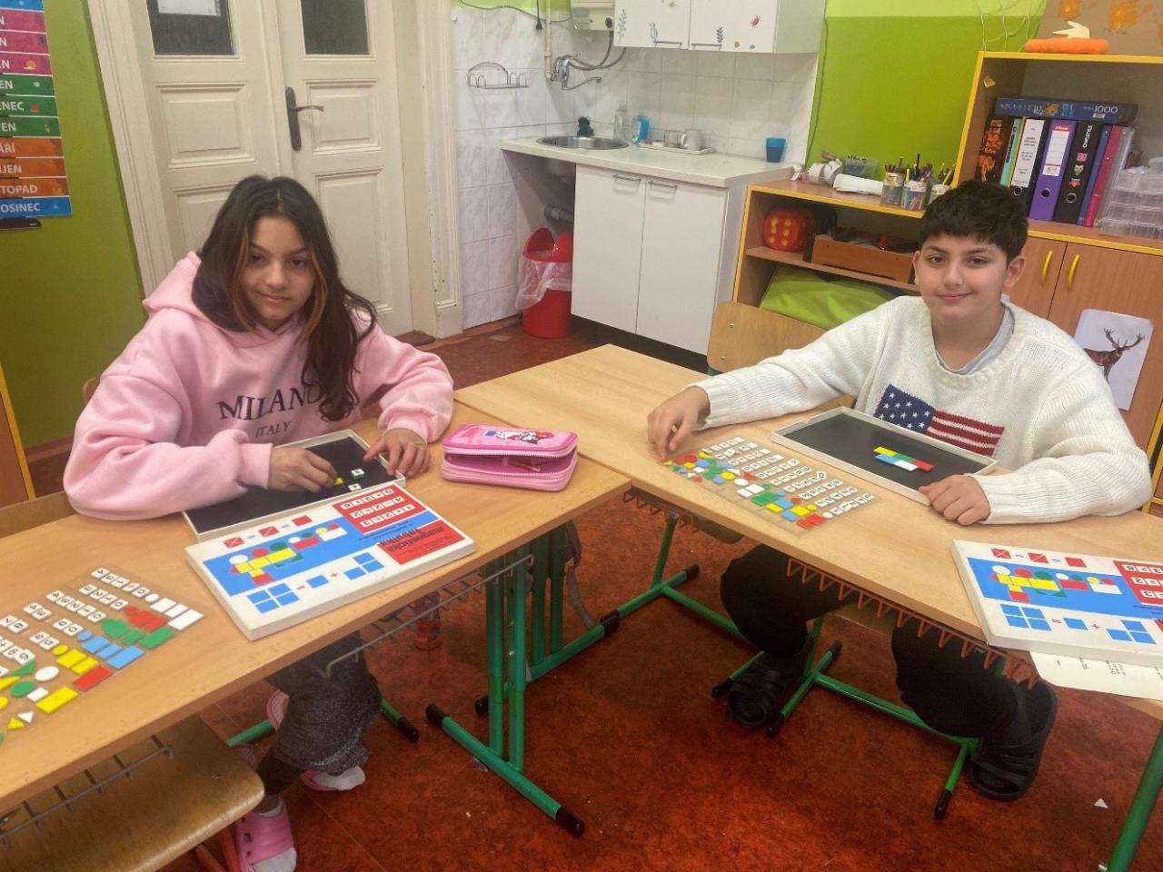 V hodinách matematiky jsme pracovali s magnetickými geometrickými tvary, z nichž jsme vytvářeli obrazce podle předlohy i podle vlastní fantazie.