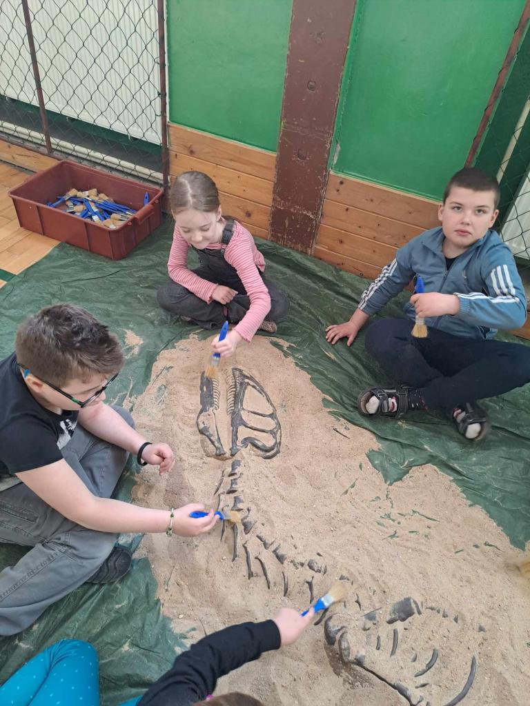 Povyprávěli jsme si o dentální hygieně, dodržování pravidel správné výživy, vypracovali několik úkolů, podívali se na video a domů si odnesli drobné dárečky. Ve čtvrtek 14. 3. 2024 jsme měli možnost podívat se do Divadélka U Zvonu v Kladně. Provedli nás zákulisím, zkusili jsme si osvětlit a ozvučit pódium, zatáhnout nebo roztáhnout oponu, poslechnout si písničky z pohádek a zatančit si přímo na jevišti. Půjčili nám na vyzkoušení divadelní kostýmy, pohráli jsme si s některými rekvizitami, zašli do skladu, kde jsou uložené kulisy, do šaten herců a do maskérny. Prohlídka se nám moc líbila a na závěr jsme za odměnu dostali věrnostní kartičku, kam můžeme sbírat razítka z každého představení. Těsně před velikonočními prázdninami k nám do školy přijel mobilní Trilopark z Prahy. Prohlédli jsme si skutečné zkameněliny, odkrývali dinosauří kostru a vyrobili si sádrový odlitek vyhynulého živočicha.