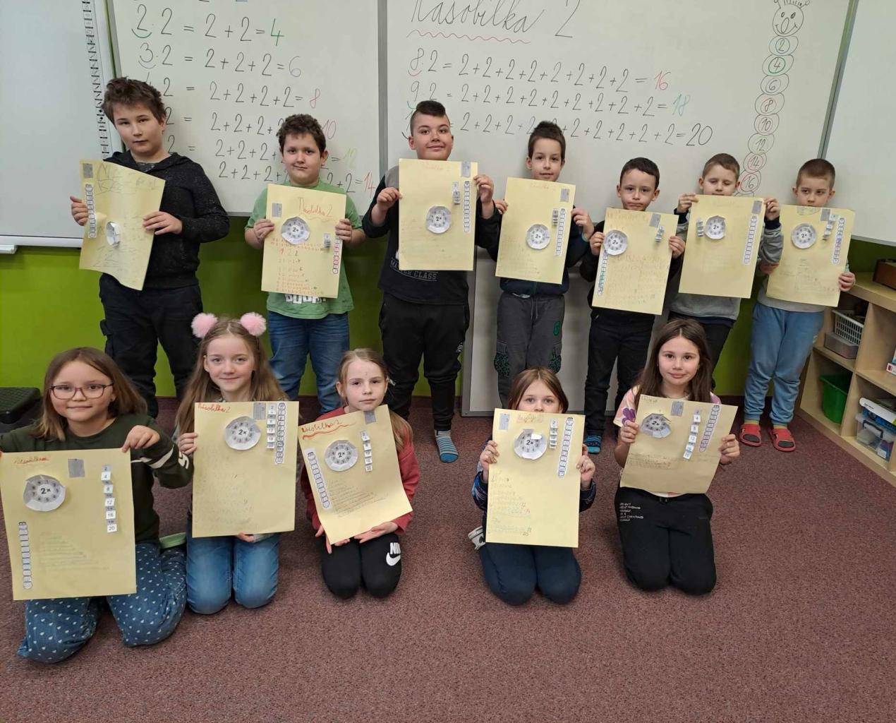 Začali jsme si vyrábět matematický lapbook, který nám pomáhá s násobilkou – zatím násobíme a dělíme číslem 1 a 2. V českém jazyce rozlišujeme párové souhlásky, v prvouce jsme se zabývali tematickým okruhem JARO. S trenéry do škol tentokrát pokračujeme se základy aerobiku.