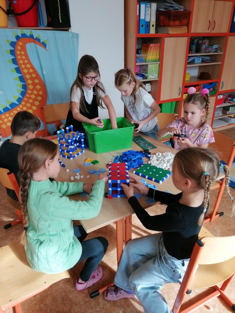 Nové je pro žáky rýsování. Zatím se seznámili s bodem a přímkou. V českém jazyce určujeme druhy vět. Někteří žáci špatně určují počet slov ve větě, ale procvičováním tohoto učiva se jistě zlepší. V prvouce probíráme přírodu a počasí. Na vycházce do lesa a parku žáci určovali rozdíly mezi stromy a keři, poznávali listnaté a jehličnaté stromy a sbírali listy na VV. Všem žákům se líbila práce se stavebnicí, výrobky mají vystavené a rádi si s nimi hrají.