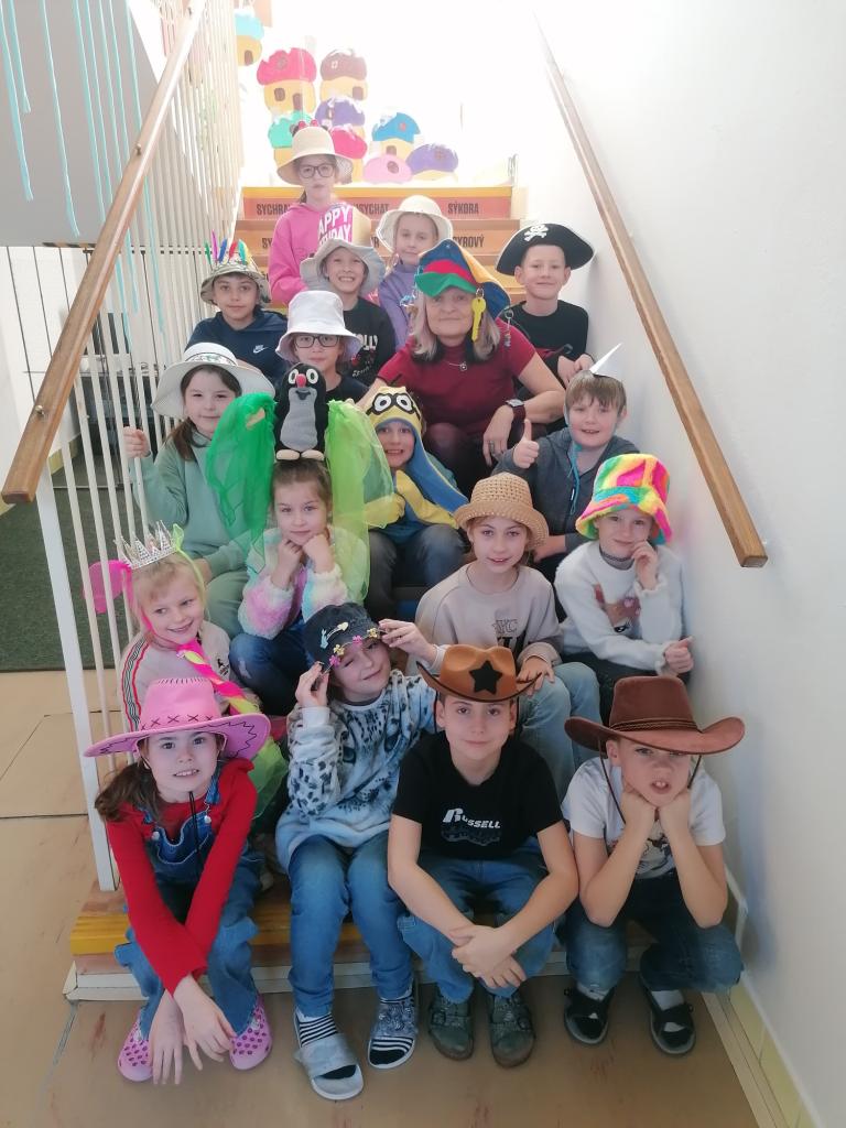 Zúčastnili jsme se školních akcí – Dne originálních klobouků a karnevalu. Líbí se i, že se těchto nepovinných akcí zúčastňují téměř všichni žáci naší třídy.