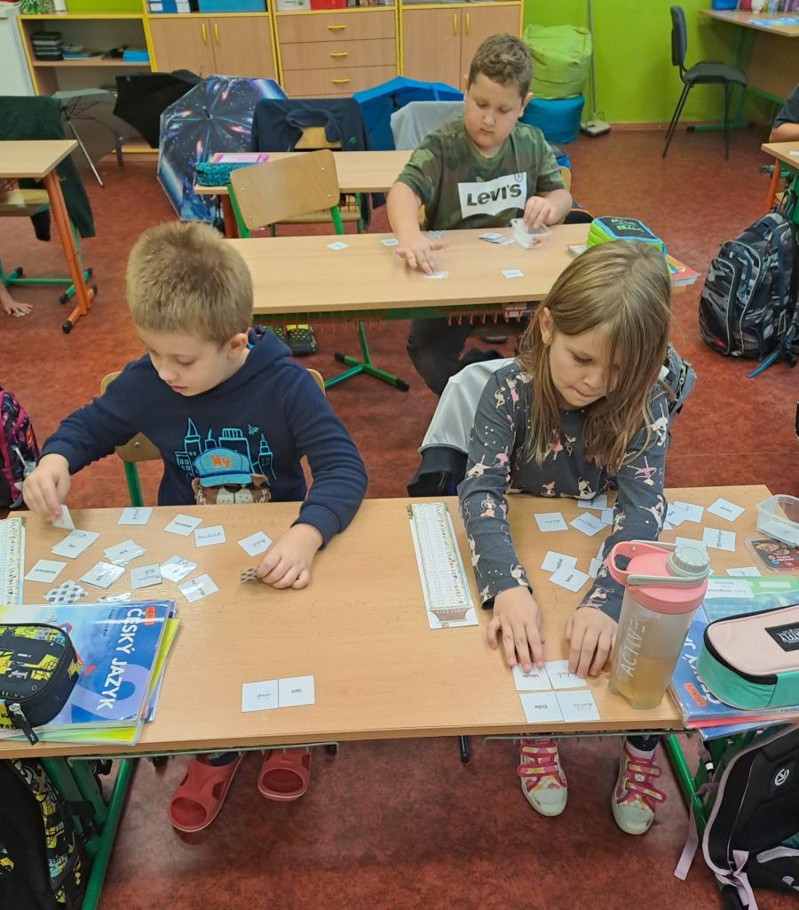 Zprvu jsme převážně procvičovali, ale pustili jsme se také na nové učivo. Aktuálně se seznamujeme s druhy vět, rozkládáme čísla na desítky a jednotky a zabýváme se podzimní tematikou.