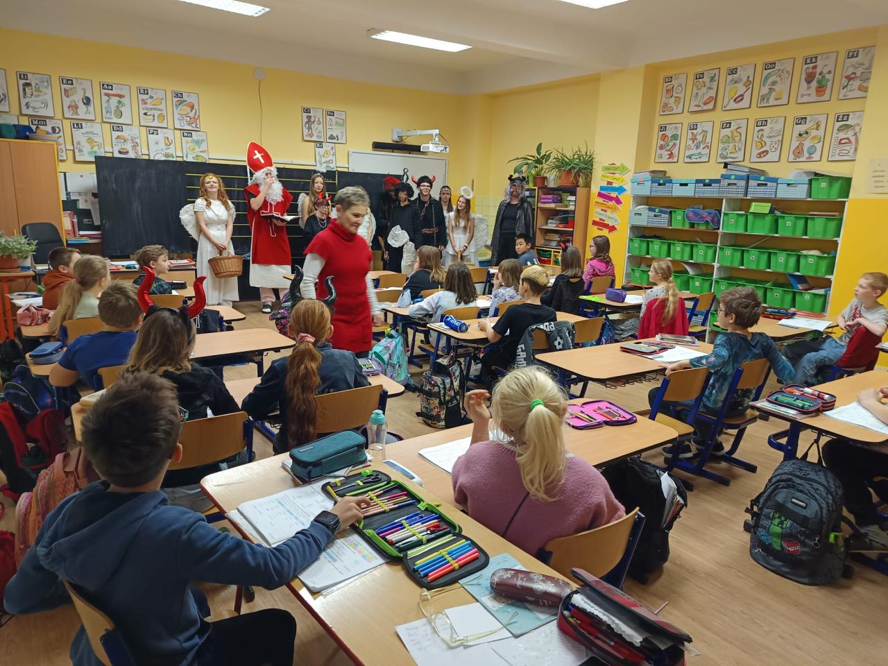 5. prosince nás ve třídě překvapili žáci 9. třídy, kteří přišli převlečení za Mikuláše a