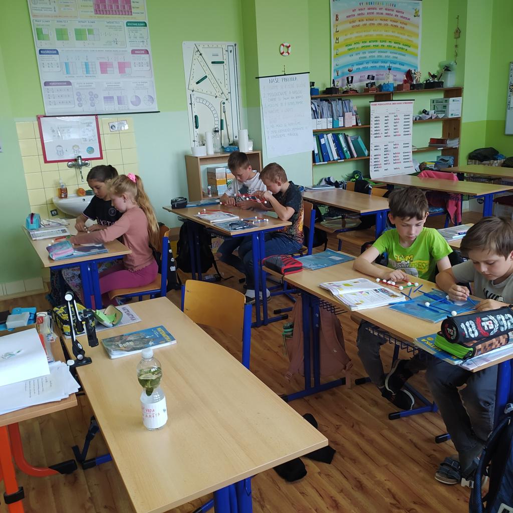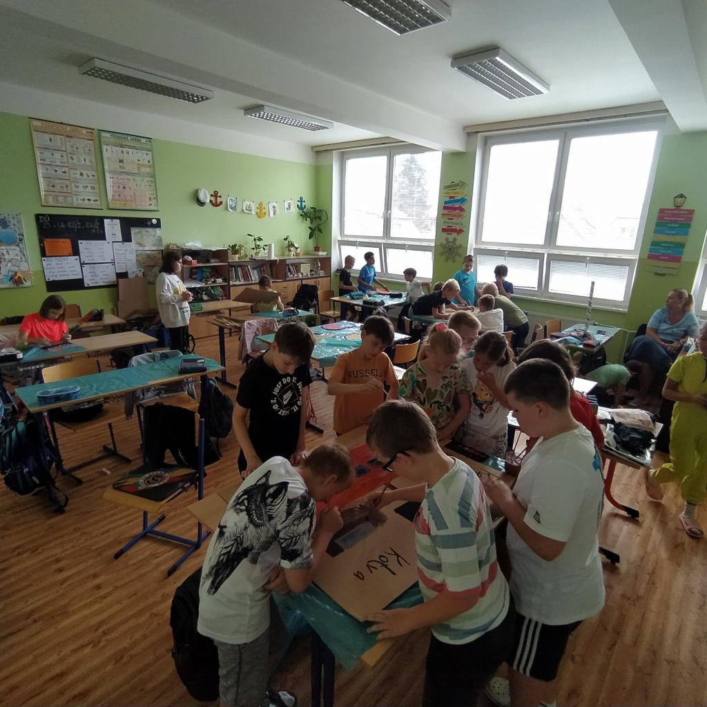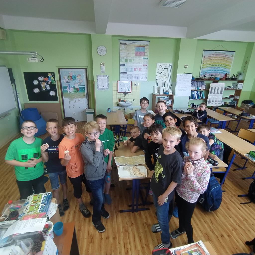 Také jsme využili geometrické stavebnice, pomocí kterých jsme si osvojili učivo o krychli a kvádru. Závěrečné opakování jsme zvládli dobře a doufali, že i vysvědčení bude hezké. Při ochutnávce sýrů a pomazánek jsme nabrali síly a mohli jsme se pustit do nácviku na závěrečnou akademii, na kterou jsme se moc těšili. Využili jsme batikovaná trička a pirátské šátky, na kterých jsme pracovali během plnění pirátských úkolů. Vyrobili jsme si i spoustu rekvizit potřebných na vystoupení.