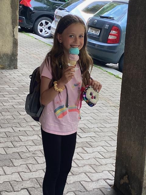 školní akademii. Všechno jsme zvládli. Před koncem školního roku jsme ještě vyrazili do lesa, kde jsme si zahráli spoustu her. Za úspěšný školní rok jsme se odměnili zmrzlinou a někteří párkem v rohlíku.