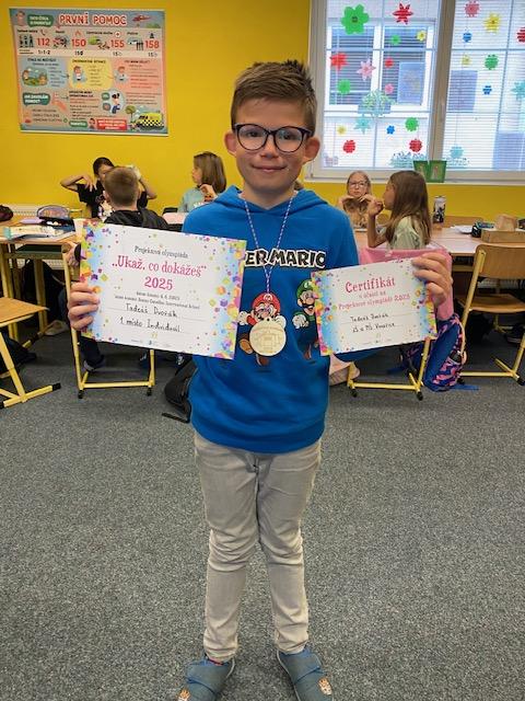 Tadeáš vyhrál školní kolo a postoupil do finále, kde se umístil na prvním místě. To si