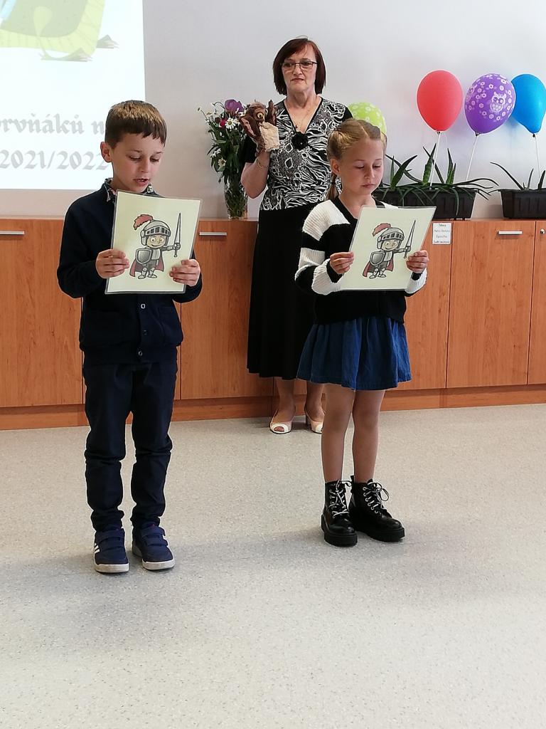Celý měsíc jsme si připravovali slib a vystoupení. Měli jsme obavy, jak vše bude probíhat, ale paní učitelka nás uklidňovala, že se nemáme bát, protože opravdu není čeho. Ukázala nám fotky prvňáčků, se kterými již pasování absolvovala.