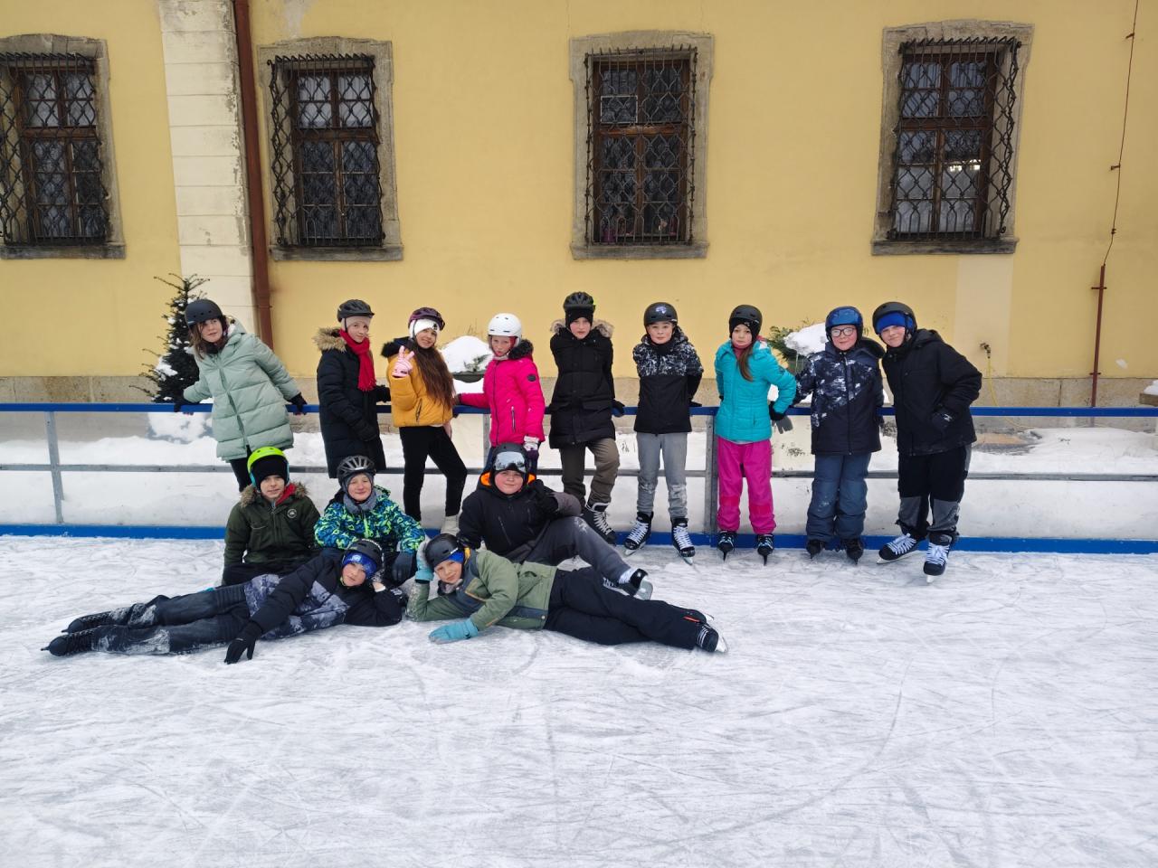 Další lednovou akcí bylo bruslení v Kladně u zámku. Někteří z nás se statečně učili úplné