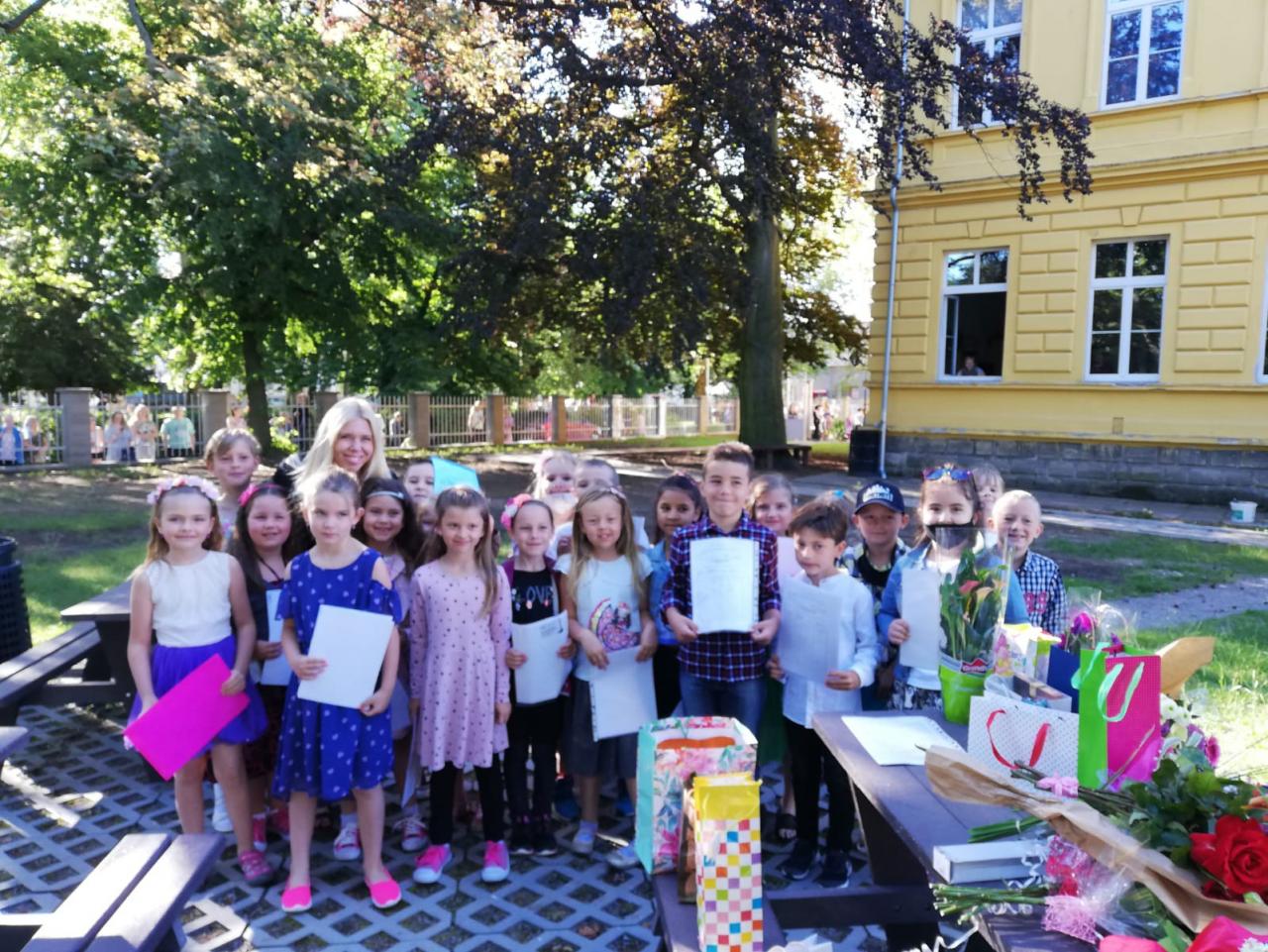 V červnu jsme s žáky procvičovali hlavně čtení, psaní, opis, diktát a sčítání do 20 s přechodem přes 10. Přestože jsme museli dodržovat přísná hygienická opatření, všem se nám ve škole moc líbilo. Hráli jsme hry, díky kterým jsme také učivo procvičovali. Poslední školní den byl netradiční, vysvědčení dostali žáci na zahradě školy, kam přišli i všichni ostatní, kteří od 25. 5. školu nenavštěvovali.