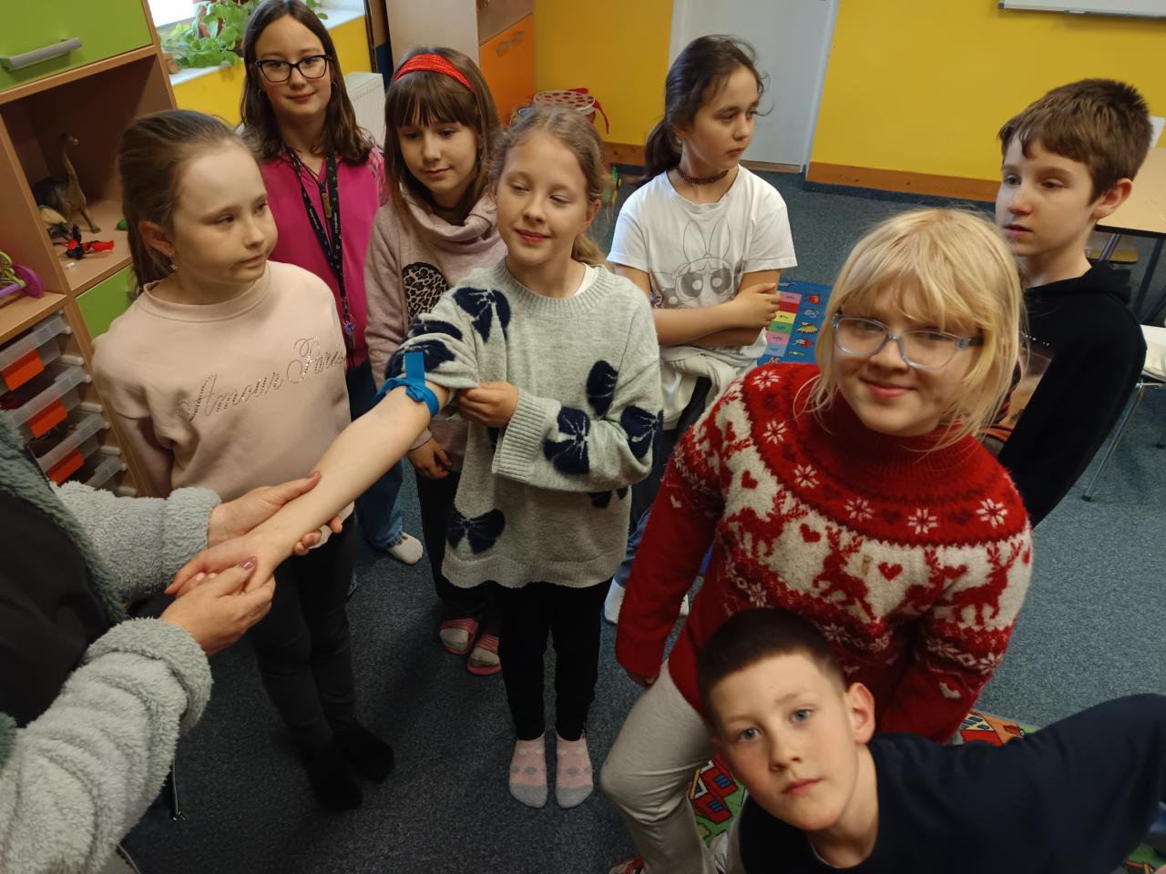 Zdravotní kroužek navštívila kolegyně studující zdravotnickou školu, která dětem ochotně a odborně předvedla obvazovou techniku. Vysvětlila jim základní postupy při ošetřování zranění a děti si mohly vše samy vyzkoušet. Program byl velmi zajímavý a poučný, dětem se moc líbil.